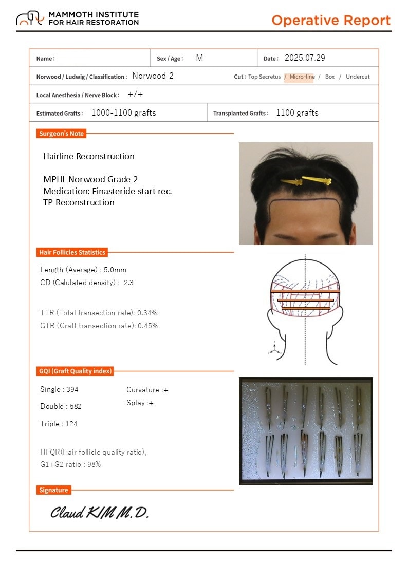 - 이식량 2200모 (1100모낭)