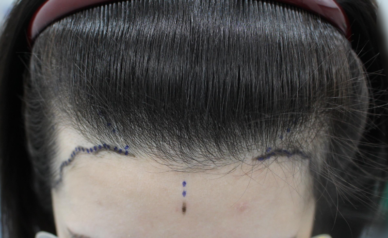 저는 이마가 너무 둥글거나 라인 내리면 비율이 어색해진대서 높이는 유지하되,