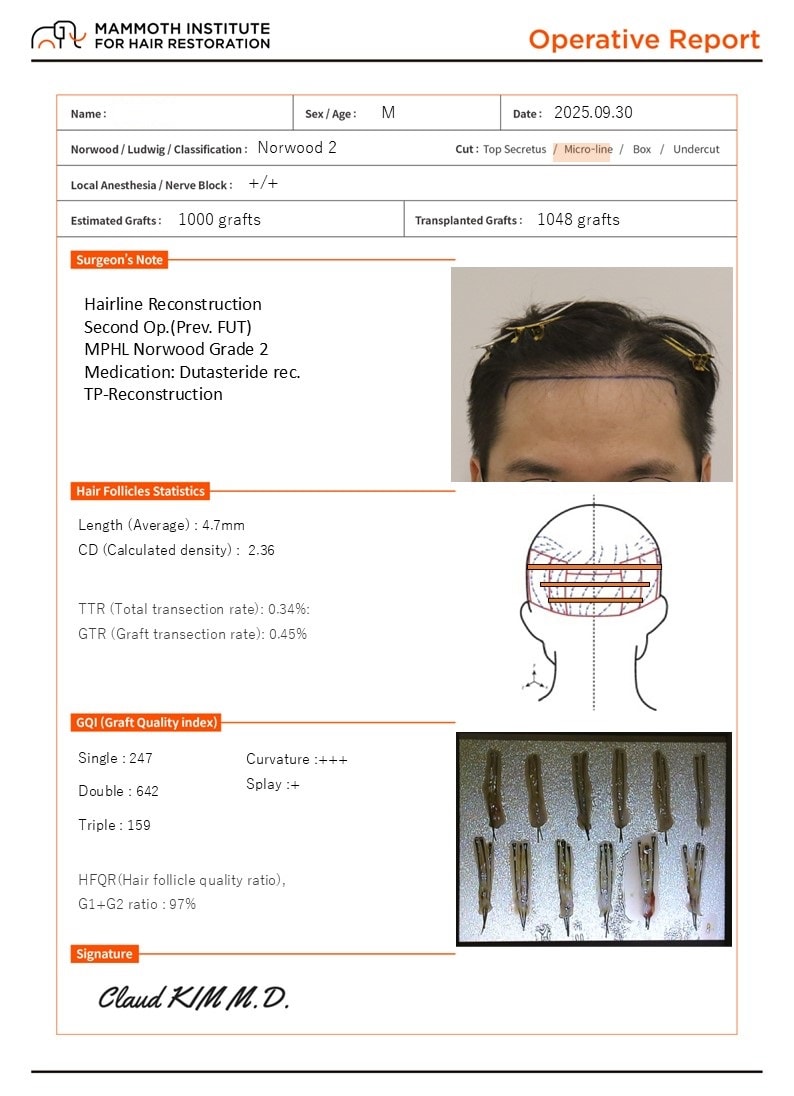 - 이식량 2096모 (1048모낭)