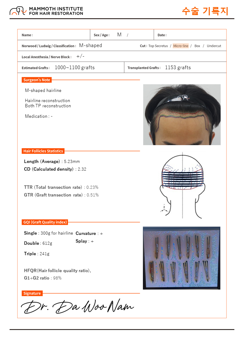 압구정 맘모스 남다우 원장님 비절개 슬릿 모발이식 후기
