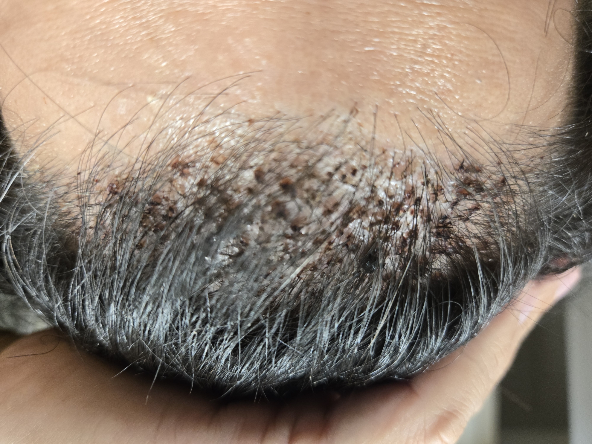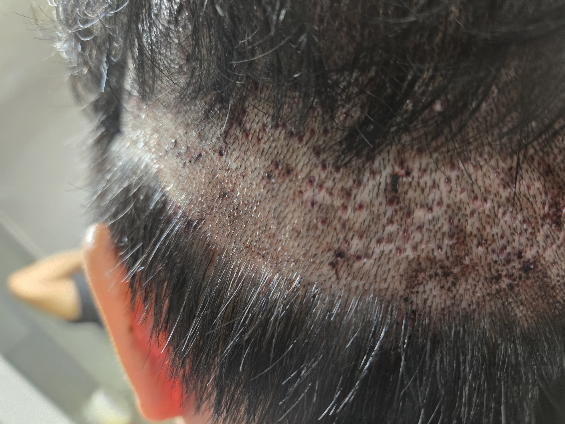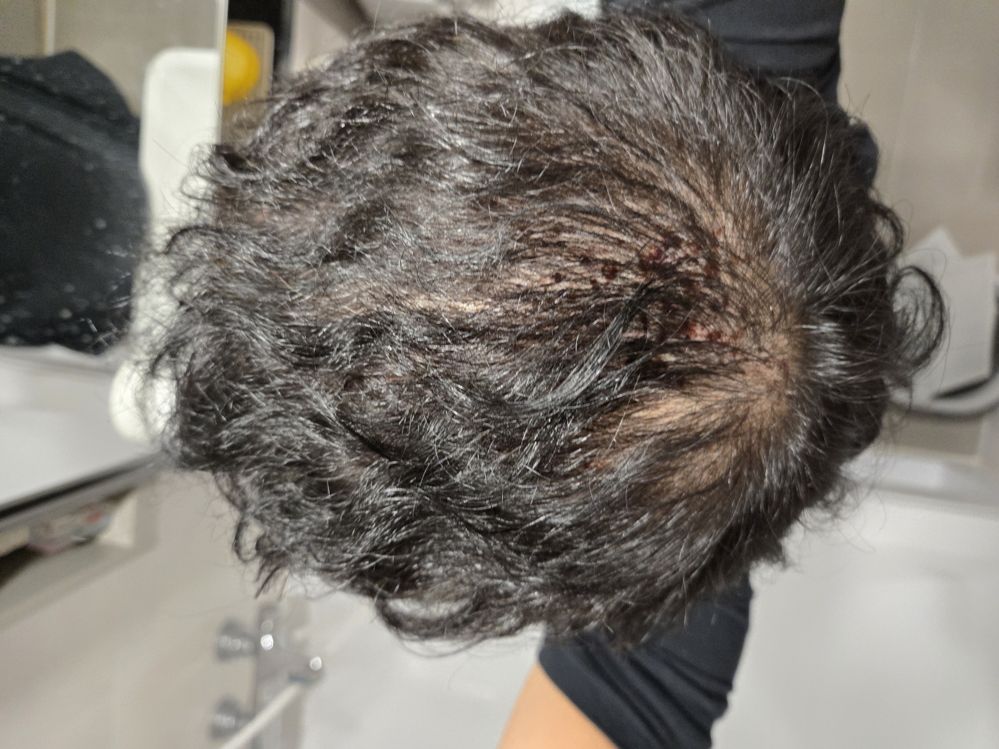 2. 생착 스프레이는 피가 굳기 전에 자주 뿌려줘야 딱지 최소화 가능. 저는 자주 안부려서 출근할라고 보니 정수리 부분 딱지가 보임.