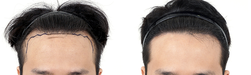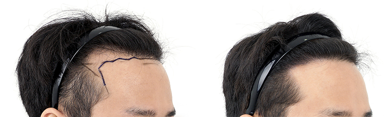 M자가 뒤로 밀리고 옆라인까지 밀려서 정면으로 보면 심하지 않은데 옆라인이 심각했습니다.