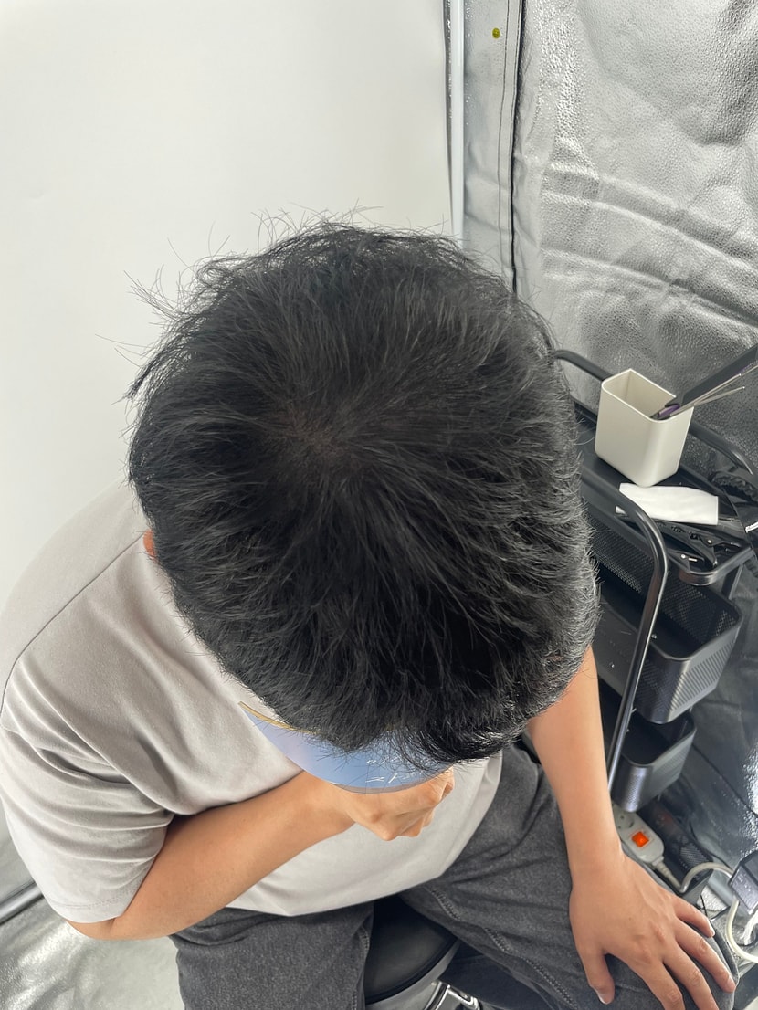 언제부터인가 정수리 쪽이 점점 휑해지는 게 거울 볼 때마다 너무 신경 쓰이더라고요. 앞머리나 M자보다 정수리는 본인이 보기보다 주변 사람들이 먼저 알아차리는 경우가 많다 보니 피하는 것보다 부딪히는 게 낫겠다 싶어서 용기 내서 병원 상담을 받아봤어요. 상담 전에 찍은 사진을 확대해서 보니 생각보다 면적이 꽤 넓었고 전체적으로 모발이 얇아서 밀도가 낮다고 하시더라고요. 원장님께서 두피 상태를 자세히 살펴보시면서 정수리 쪽은 생착률 자체는 좋은 편이지만 면적이 넓은 경우에는 2000모만으로는 생각하는 풍성한 느낌을 내기가 어렵다고 설명해주셨어요. 처음엔 2000모면 꽤 많지 않나 싶었는데 실제로는 정수리 전체를 커버하기엔 부족할 수 있다고 하시더라고요. 그리고 결정적으로 제 후두부 상태가 조금 얇고 밀도가 낮아서 너무 무리하게 많은 양을 채취하기엔 어려움이 있을 수 있다고 하셨어요. 그래서 원장님이 추천해주신 방법이 바로 정수리 2000모 이식과 모낭줄기세포 치료 병행이었어요. 모낭줄기세포 치료는 기존 모발의 성장 환경을 개선하고 이식된 모낭의 생착을 돕는 역할을 한다고 하더라고요 즉 이식을 하면서도 남아 있는 머리카락을 최대한 살리는 방향으로 치료를 병행하는 거죠 상담 중에 가장 좋았던 건 단순히 더 많이 심읍시다가 아니라 제 모발 상태와 두피 여건을 고려해서 현실적인 방법을 제시해주셨다는 점이었어요 무턱대고 많은 양을 심는 것보다 생착률과 모질 개선을 함께 고려하는 게 결과적으로 훨씬 자연스럽고 효율적이라는 설명이 이해가 됐습니다 그렇게 모발이식이랑 모낭줄기세포 주사치료를 받게 됐고 벌써 치료 받기 시작한지 1년이 지났습니다 치료 받을 때 머리 언제 올라오나 하면서 맨날 거울만 들여다봤는데 1년이 지나니 이렇게 빼곡해진 머리가 돼서 새삼 기쁘네요