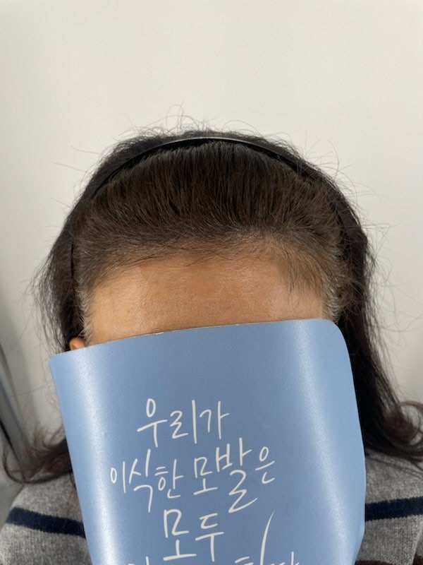 수술 전에는 가르마가 두 갈래로 벌어지고, 조명만 비치면 두피가 바로 드러나 보였습니다. 머리를 묶을 때마다 더 신경 쓰였고, 사진 찍을 때도 늘 정수리 먼저 보게 되는 나날이어요.3개월 차에는 겉으로는 큰 변화가 없어 보여도, 가까이 보면 아주 가느다란 실 같은 머리들이 조용히 올라오기 시작했습니다. 작은 변화였지만 마음이 꽤 크게 움직이던 시기였어요.6개월이 되자 가르마의 빈 부분이 한 겹, 두 겹 채워지는 느낌이 눈에 보였고, 정수리의 번들거림도 조금씩 줄어들었습니다. 빛에 비칠 때 예전처럼 확 비어 보이지 않는 게 가장 먼저 느껴졌구요. 그래도 이때까지는 회복이 좀 더디다고 생각이 되던 시절이었어요.그리고 지금 8개월. 사진을 보면 정수리의 훤한 빛 번짐이 거의 사라졌습니다.가르마 라인은 원래처럼 자연스럽지만, 그 속이 듬성듬성 비어 보이던 느낌이 없어졌고 머리카락이 고르게 채워져 깊이감이 생겼습니다. 바람을 맞아도, 햇빛 아래 서 있어도 더는 마음이 불편하지 않습니다.제가 모발이식을 해보니 어제 다르고 오늘 다르고 내일 다른 수술이 아니네요.진득하니 아주 자연스럽게 채워지는 변화가 일어나는 수술 같아요.드디어 8개월이 되어 그 변화를 일상에서 확실히 체감하고 있어요.앞으로 10~12개월... 굵기와 밀도가 더 잡히면서 더 안정적인 볼륨을 기대할 수 있을 것 같아요.너무 만족하고 수술해주신 원장님하고 병원 직원분들에게 너무 감사합니다. ^^ ♥