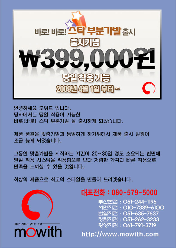 모위드 당일착용 바로바로 스탁부분가발(\399,000원) 출시~~!