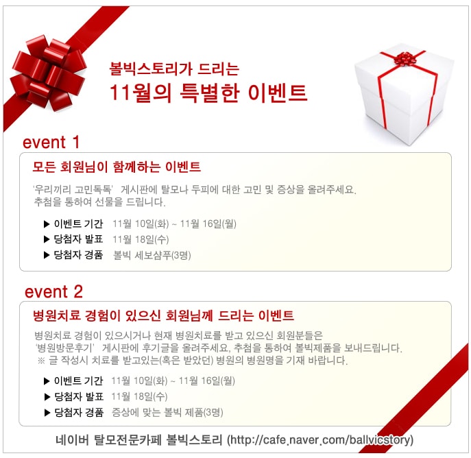 탈모전문카페 볼빅스토리에서 두가지 이벤트를 동시 진행 합니다.