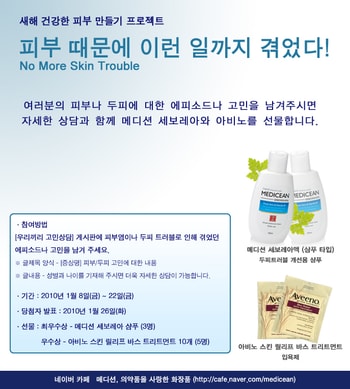 여러분의 피부나 두피에 대한 에피소드나 고민을 남겨주시면 자세한 상담과 함께 메디션 세보레아와 아비노를 선물합니다.