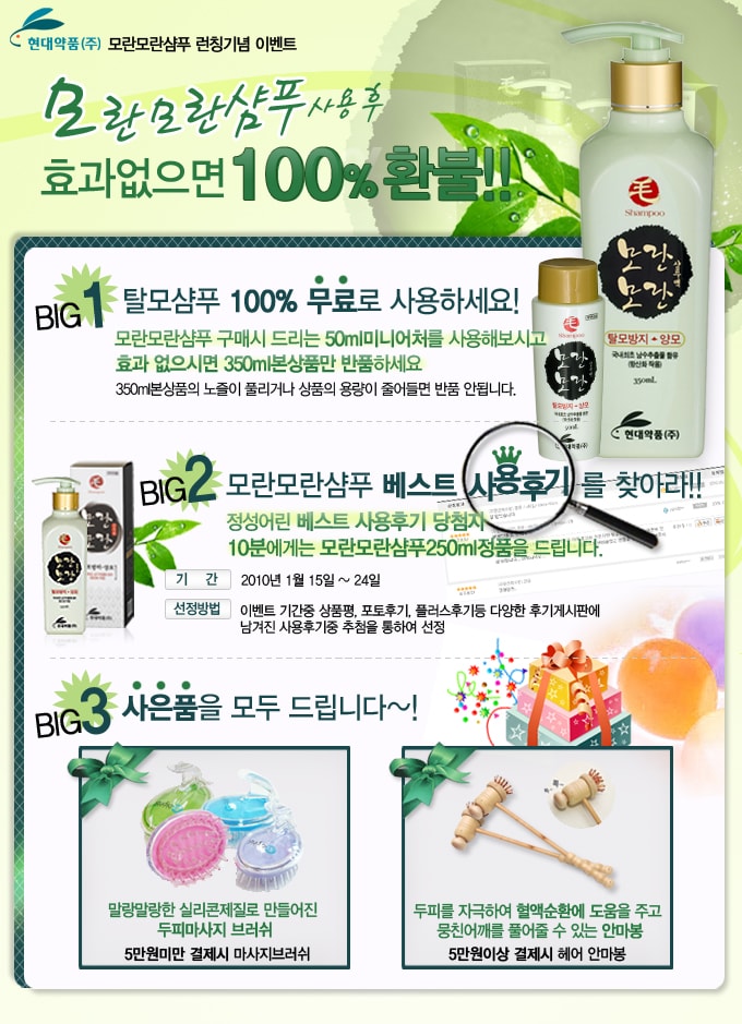 [현대약품 모란모란샴푸]상품체험&사용후기 이벤트합니다~
