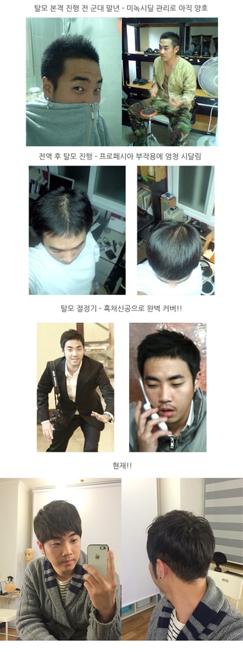 현재 모발이식 4개월 경과 사진입니다.모발이식 2개월차에 이식모 거의 다 빠진 후 다시 자라나기 시작한지 이제 2개월 정도 됐어요. 의사 선생님 말로는 현재 60~70 프로 정도 올라온거고 잘자라고 있다고 하시네요. 요새 이식모들이 탄탄하게 자리를 잡아줘서 예전보다 앞머리 스타일링 하기가 훨씬 수월해지네요. 1년차되면 길이도 많이 길어질거 같은데.. 기대됩니다. 회원님들 날씨 추워지는데 항상 건강유의하시고 득모하세요~!