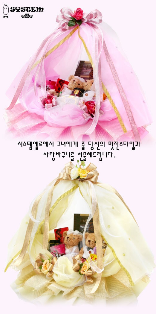 바구니속에는 예쁜인형과 사탕 고급레드와인및 사랑의메시지를 전할수있는 예쁜 카드를 드립니다.