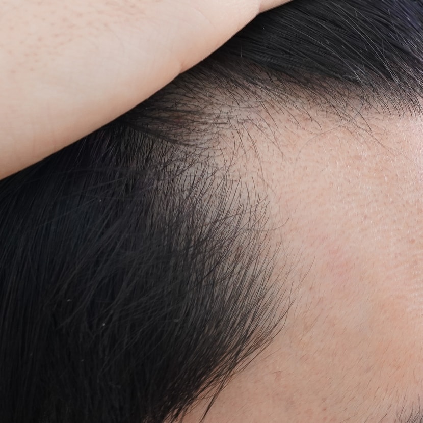 - 이게 참 어렵습니다. 일단 전체적인 숱은 여전히 많은 편입니다. 정수리 쪽은 빽빽해서 탈모가 아니라는 확신이 서는데 이마 관자놀이 부근이 판단하기 참 애매한 상황입니다. 근데 관자놀이 부근도 보면 정도의 차이가 유의미하게 보입니다.