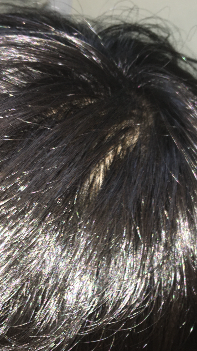 5. 탈모 진행상황은 연모화가 가장 크게 보이고, 정수리 부분이 휑해지고 있습니다.