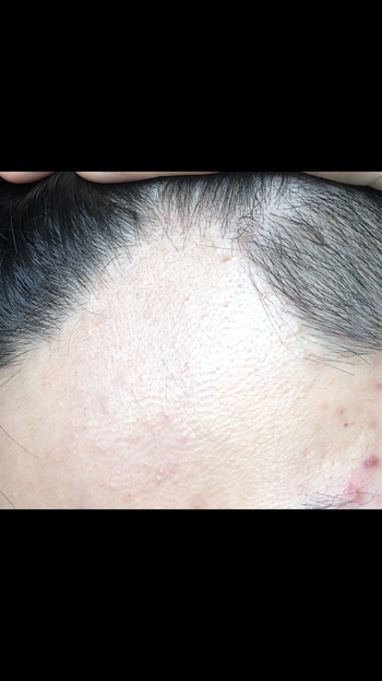 일단 M자부분을 보니까 아주 얇고 짧은 미세한 털들이 자랐어요. 사진에서도 좀 보일거에요. 정수리는 아직 잘 모르겠어요