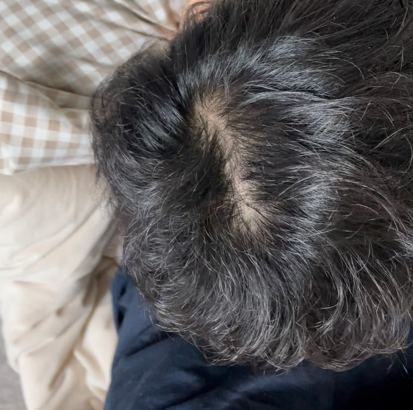 수술 부위 쪽은 만졌을 때 살짝 까슬까슬한 느낌이 있고, 짧은 솜털 같은 것도 조금씩 올라오고 있어요. 눈으로 보면 아직 티는 안 나지만, 가까이서 보면 ‘뭔가 자라고 있긴 하구나’ 싶습니다ㅎㅎ 정수리 쪽은 아직 살짝 듬성듬성해 보이지만, 각도나 조명 따라 보면 짧은 솜털들이 반짝거려서 희망적입니다!!