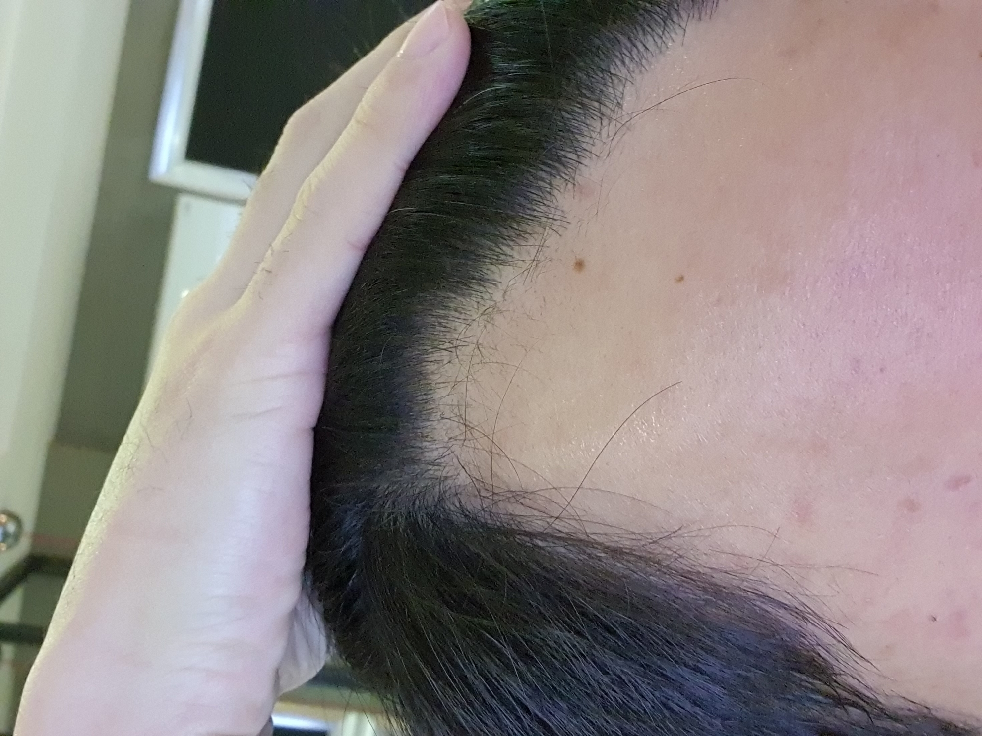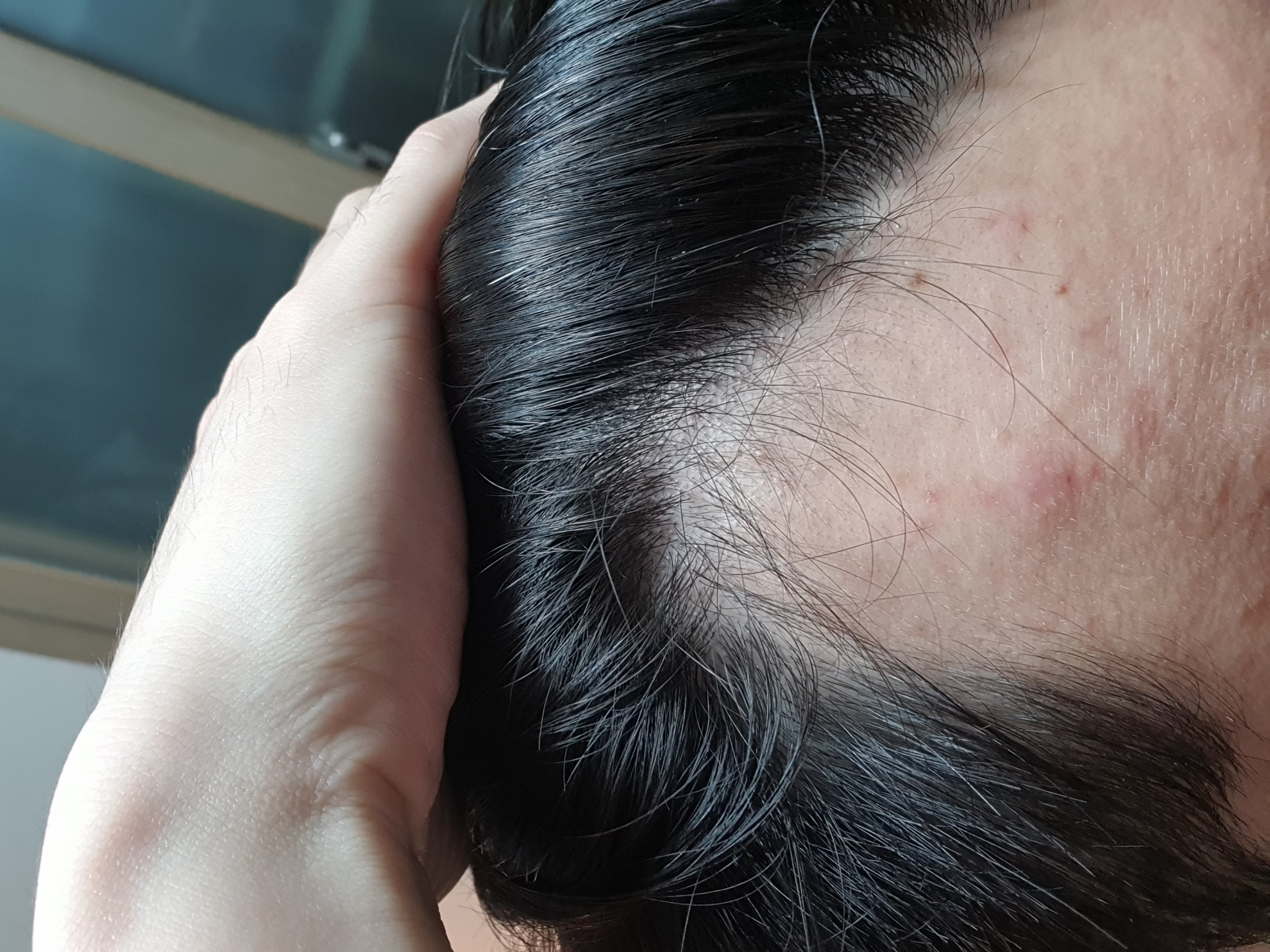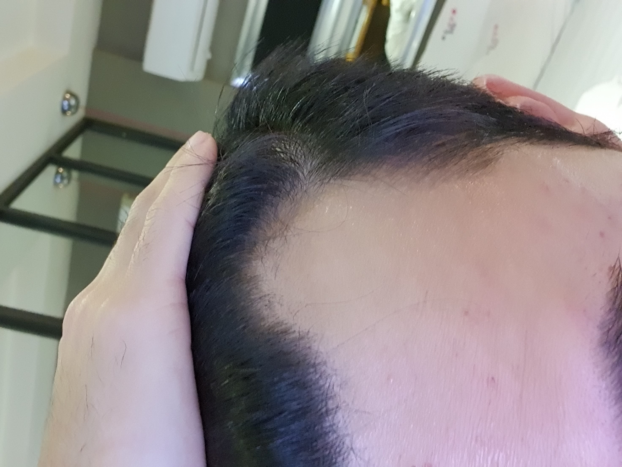 왼쪽보다 오른쪽이 더 파인 이유는 아마 초등학교 저학년 때 저 부분을 피가 날 정도로 머리가 뜯긴 적이 있는데 그때 모근들도 다 뽑혀버린 게 아닌가라는 저의 뇌피셜이 있습니다.