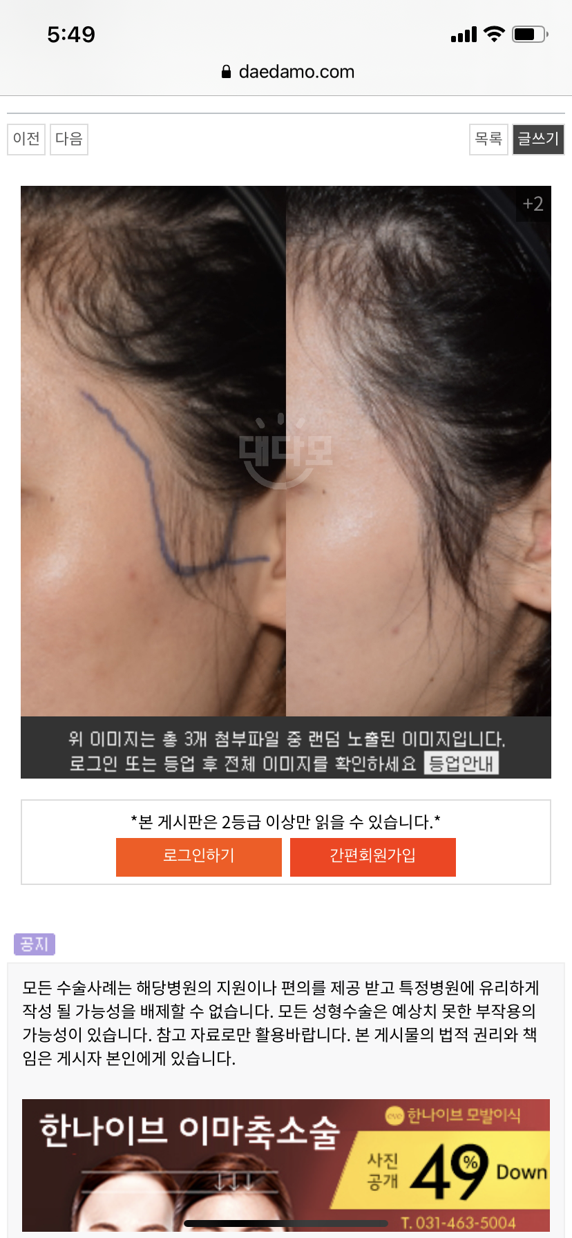https://daedamo.com/photo2/627720저번에 수술직후 후기 남겼었는데 이제 한 이주가 흘러서 또 후기남기러 왔습니다.고민고민하다가 수술받았는데 심겨진 모발보니잘했다는 생각이 드네요물론 암흑기라 곧 다빠지겠지만, 그래도 원장님이설명해주신 것처럼 낙담하지 않고 관리 열심히해서지금 보여지는대로 잘 자랐으면 좋겠네요다음에 또 경과보러가면 후기 남기겠습니다모두모두 득모합시다