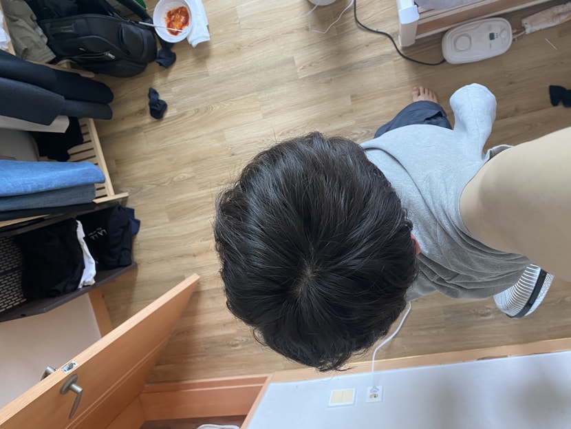 처음엔 조금 당황했는데 병원에서 이미 들었던 부분이라 그냥 담담히 받아들이고 있어요. 사진으로 보면 전보다 휑해진 느낌이 있긴 하지만, 가까이서 보면 짧고 가는 새 머리들이 촘촘하게 올라오고 있습니다.
