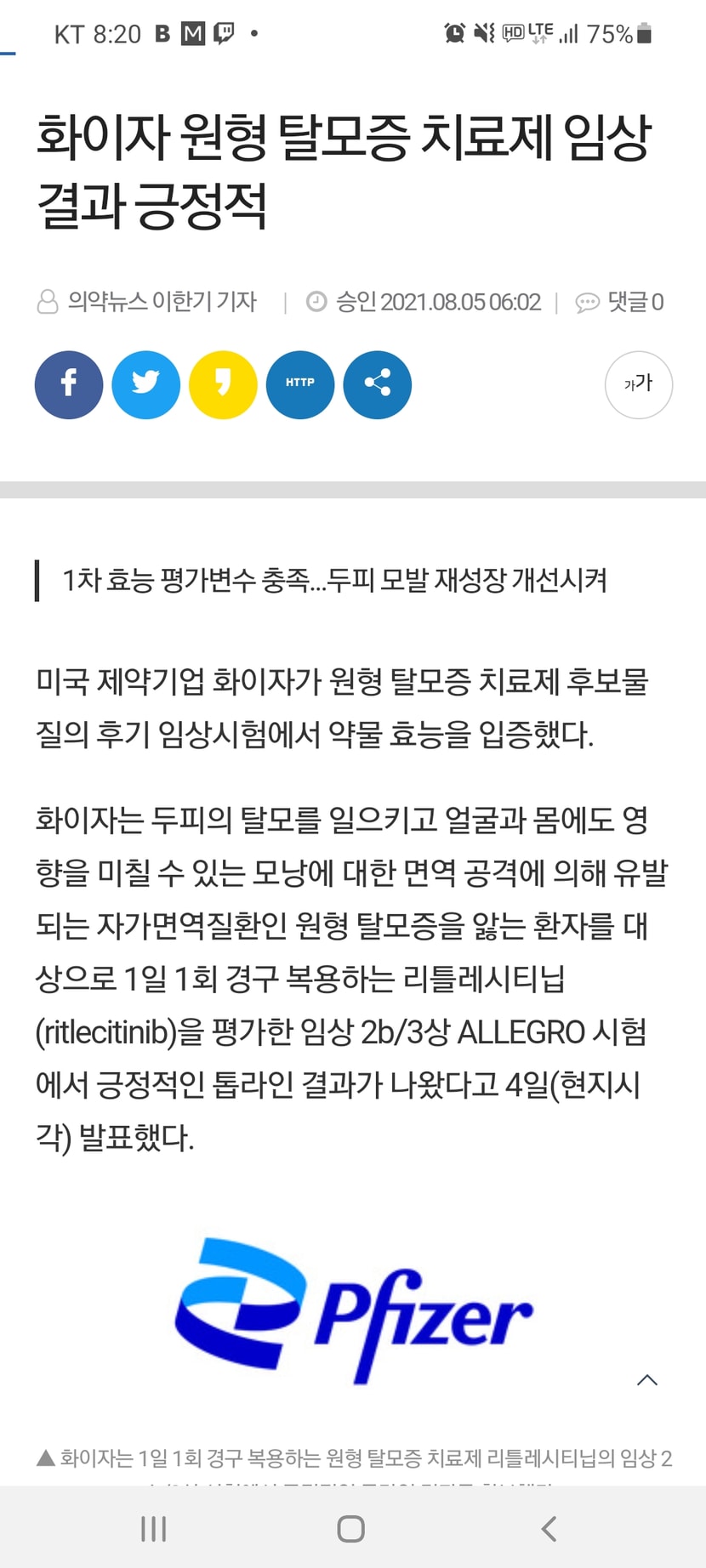 [해외뉴스] 화이자 원형탈모 치료제 임상효과 긍정적