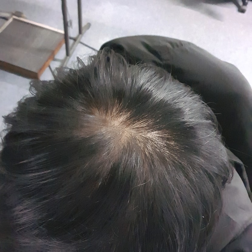 치료 전 - 3개월차 - 9개월차 순입니다 저의 탈모 고민은 30대 초반부터 시작됐습니다 처음에는 머리카락이 좀 빠지나 싶었지만 시간이 지날수록 이마 라인이 점점 올라가는 게 눈에 보였죠   그때부터 피나스테리드를 복용하기 시작했고 거의 8년 가까이 꾸준히 먹었습니다 그 덕분인지 빠지는 속도는 어느 정도 잡히는 느낌이 있었고 크게 불만 없이 유지하고 있었습니다   그러다 주변에서 두타스테리드가 효과가 더 좋다고 해서 좀 더 공격적으로 관리해보고 싶다는 생각에 약을 바꿨습니다 약 2년 정도 복용했는데 저같은 경우엔 부작용이 꽤 뚜렷하게 나타났습니다   몸이 이상하게 자꾸 처지고 기운이 없었고 감정 기복이 생기면서 우울감도 느껴졌습니다 단순히 기분 탓이 아니라 확실히 약 때문이라는 느낌이 들더라고요 발모 효과도 솔직히 기대만큼 크지 않았습니다 결국 6개월 전부터는 다시 피나스테리드로 돌아왔고 다행스럽게도 몸 컨디션은 다시 편안해졌죠   국소 미녹시딜도 함께 사용하긴 했지만 매일 꾸준하게 바르는게 생각보다 쉽지는 않아서 간헐적으로만 사용했네요   나한테 맞지 않는 관리를 하고 있는게 아닌가 싶어서 상담을 갔고 원장님께서 현재 상태가 그렇게 심각하지 않다고 말씀해주셨어요   아직은 많이 진행된 상태가 아니고 지금부터라도 관리를 잘하면 앞으로도 충분히 유지 가능하다고 하시더라고요   그래서 이번에는 단순히 약에만 의존하는 게 아니라 적극적으로 두피 상태 자체를 개선해보자는 생각이 들더라구요 그리고 저는 줄기세포 치료에 대한 설명을 들었고 총 20회 받기로 결정했죠   솔직히 치료받기 전에는 효과에 대한 의심도 있었고 ‘내가 과연 이런 시술까지 받아야 하나’라는 생각도 들었습니다 하지만 지금은 확실히 만족하고 있습니다   치료를 시작한 지 6개월쯤 지나고부터 두피가 전보다 훨씬 덜 예민해졌다는 걸 느꼈고 모발 굵기도 조금씩 두꺼워지는 느낌이 있었습니다   머리 감을 때 빠지는 양도 예전보다 확실히 줄었고 거울 볼 때마다 정수리가 눈에 띄게 갈라지던 시절과 비교하면 지금은 꽤 안정적으로 유지되고 있다는 느낌이 듭니다   주변에서도 많이 좋아졌다는 얘기해주고 스스로도 확실히 자신감이 생긴 걸 느끼네요   탈모는 진행되기 전에 관리하는 게 정말 중요하다는 걸 이번에 다시 한번 느꼈습니다 예전에는 약만 복용하면 괜찮겠지 싶었는데 지금은 두피 환경을 건강하게 유지하는 것도 그만큼 중요하다는 걸 알게 됐네요   같은 고민을 하고 계신 분들이라면 너무 늦기 전에 병원에서 상태를 정확히 진단받아보고 나한테 맞는 치료 방향을 찾는 게 가장 좋다고 생각합니다 남은 횟수도 잘 받아서 머리 걱정 안하는 날이 왔으면 좋겠습니다