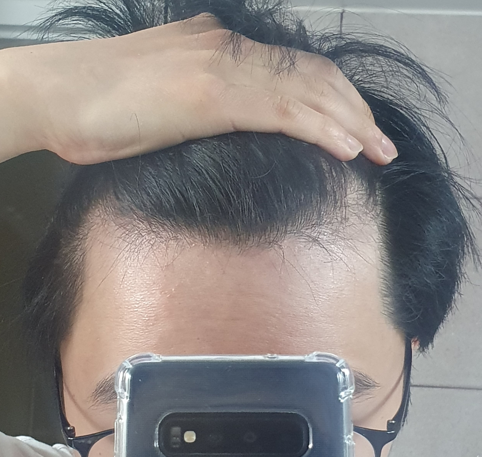 처음엔 조금 당황했는데 병원에서 이미 들었던 부분이라 그냥 담담히 받아들이고 있어요. 사진으로 보면 전보다 휑해진 느낌이 있긴 하지만, 가까이서 보면 짧고 가는 새 머리들이 촘촘하게 올라오고 있습니다.