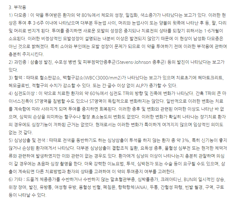하지만 나머지 부작용들과 일반적 주의 에 나와있는 다른 증상들도 오래 드시다 보면 생긱게 됩니다.