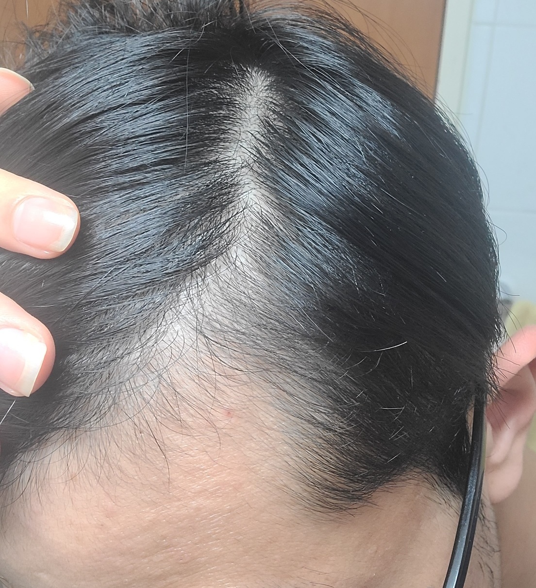 수술 부위 쪽은 만졌을 때 살짝 까슬까슬한 느낌이 있고, 짧은 솜털 같은 것도 조금씩 올라오고 있어요. 눈으로 보면 아직 티는 안 나지만, 가까이서 보면 ‘뭔가 자라고 있긴 하구나’ 싶습니다ㅎㅎ 정수리 쪽은 아직 살짝 듬성듬성해 보이지만, 각도나 조명 따라 보면 짧은 솜털들이 반짝거려서 희망적입니다!!