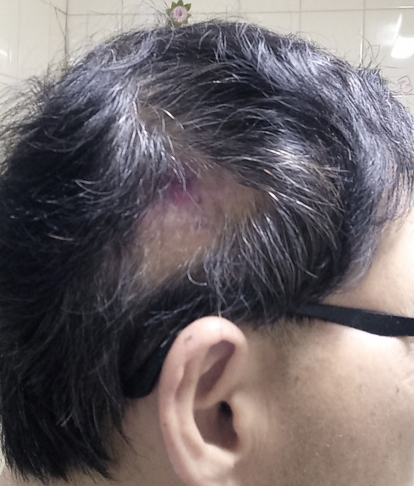 딱지 부위 외에도 휑한 부위가 너무 커서 옆주변머리로 가리고 다니는데도 표가 날 정도로 큽니다. 신경도 많이 쓰이고요.
