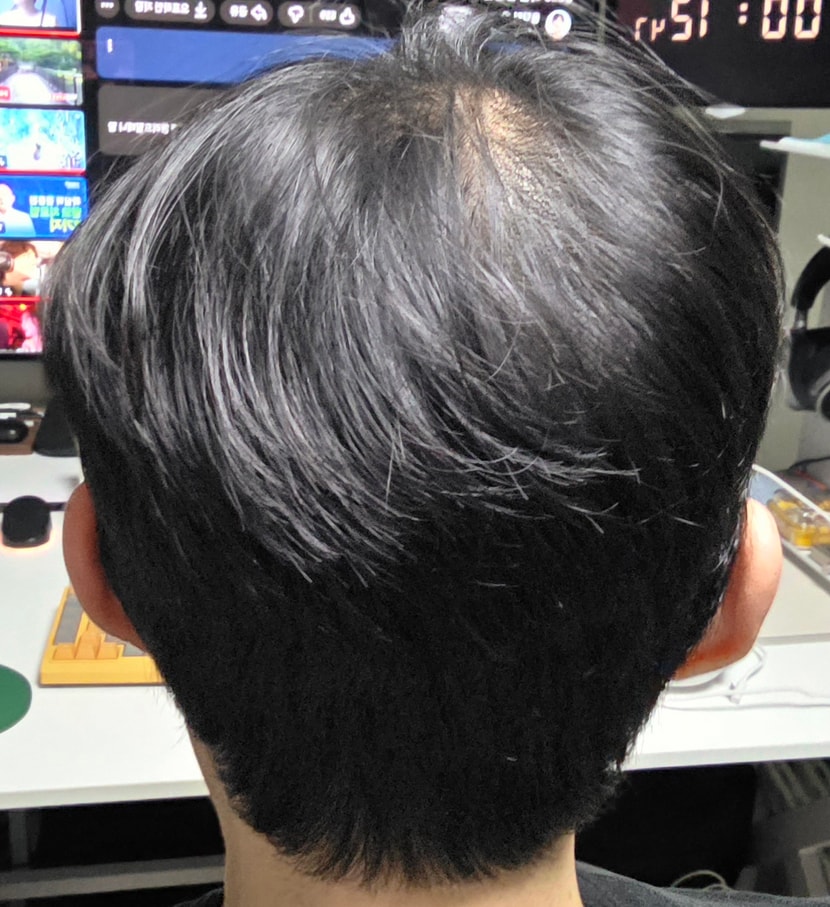 안녕하세요. 8월 27일에 수술하고 벌써 두 달이 지났네요. 시간 참 빠릅니다. 수술 직후엔 하루하루가 느리게 가더니, 이제는 출근하고 일하다 보면 어느새 주말이고, 머리도 조금씩 변하고 있어서 신기합니다. 2주차 때까지만 해도 붓기도 살짝 남아있고, 간지러움 때문에 괜히 예민했는데 지금은 그런 건 전혀 없습니다. 세안할 때나 머리 감을 때도 불편함 전혀 없고, 일상생활에 지장은 1도 없어요. 요즘은 암흑기가 온건지 머리가 빠지는 것도 조금씩 보입니다. 처음엔 조금 당황했는데 병원에서 이미 들었던 부분이라 그냥 담담히 받아들이고 있어요. 사진으로 보면 전보다 휑해진 느낌이 있긴 하지만, 가까이서 보면 짧고 가는 새 머리들이 촘촘하게 올라오고 있습니다. 수술 부위 쪽은 만졌을 때 살짝 까슬까슬한 느낌이 있고, 짧은 솜털 같은 것도 조금씩 올라오고 있어요. 눈으로 보면 아직 티는 안 나지만, 가까이서 보면 ‘뭔가 자라고 있긴 하구나’ 싶습니다ㅎㅎ 정수리 쪽은 아직 살짝 듬성듬성해 보이지만, 각도나 조명 따라 보면 짧은 솜털들이 반짝거려서 희망적입니다!! 모자는 여전히 매일 쓰고 다니고 있고, 회사에서도 아무도 모릅니다. 비절개 삭발 방식으로 하길 정말 잘한 것 같아요. 지금 길이도 짧아서 깔끔하고, 머리 감거나 말리기도 편하네요. 약은 꾸준히 복용 중이고, 병원 관리도 정기적으로 받고 있습니다. 한달에 한번씩 병원가서 진정 관리해주니까 확실히 가려움이나 건조함이 덜해졌어요. 원장님이 말씀하신 것처럼, 이 시기엔 조급해하지 말고 두피 청결 유지랑 생활습관 관리에 집중하려고 합니다. 아직은 결과를 논하기엔 이르지만, 경과는 나쁘지 않은 것 같습니다. 앞으로 3~4개월차쯤 되면 눈에 띄는 변화가 있을 거라 기대하면서 꾸준히 관리 중입니다. 다음 후기 때는 좀 더 풍성해진 모습으로 찾아뵙겠습니다!
