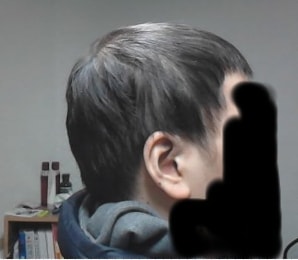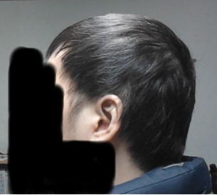 보시다시피 옆머리숱도 뒷 머리숱도 그다지 입니다.