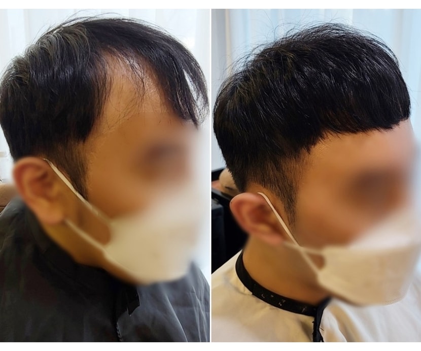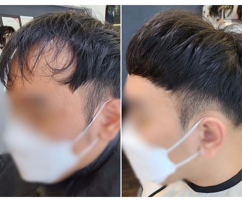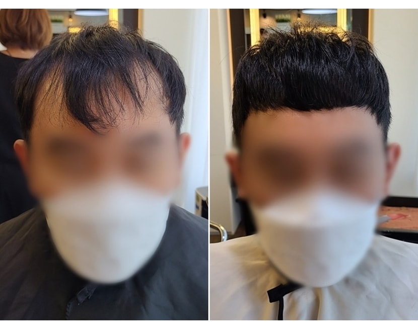 엠자 탈모로 드러난 이마 커버가 필요했고 가라앉는 정수리 볼륨감을 원하셨어요.