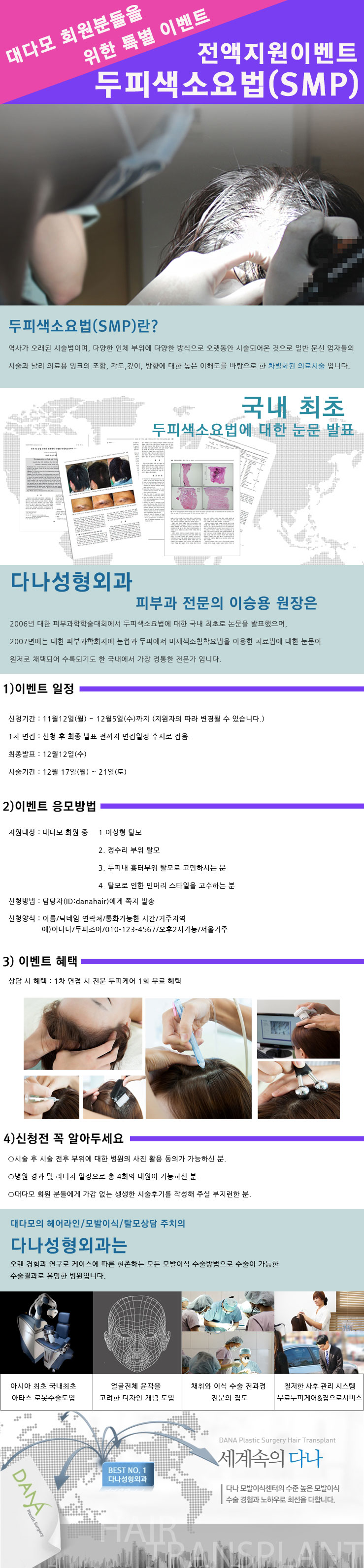 전체[공지] 다나성형외과 두피색소요법 시술비 전액지원 이벤트 안내