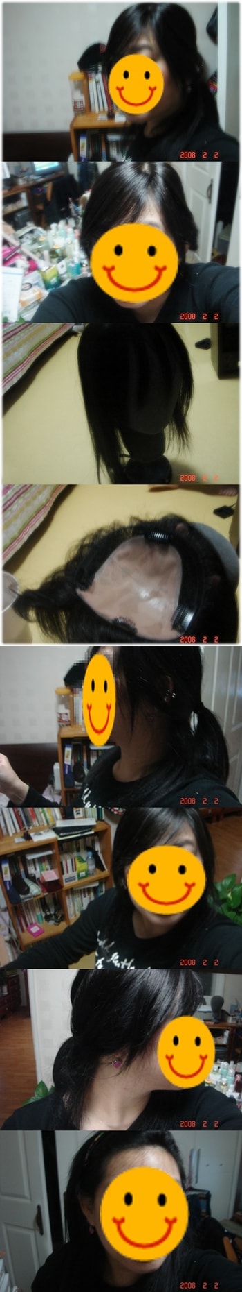 머리띠한거랑 반묶음 완전 묶음 한거요. 그리고 가발 어떻게 생긴건지 궁금해하시는 분들이 쪽지를 보내오셔서 ... 가발사진하고 가발 뒤집은 그러니까 핀으로 고정해야 하는 부분 사진도 올려요! 제 가발 핀은 4갠데 옆쪽에 두개 더 하고 싶다는.쫌 그 부분이 뜬다는 느낌이 들어서요..무튼..