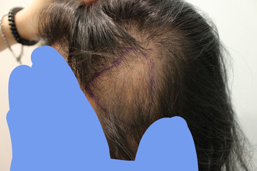 지금현재상태는 정수리이식부 머리는 올라오지않고 절개부위쪽 상처가 옅어지고 그부분에 머리가 올라오고있는상태구요! 옆머리는 수술전보다 더좋아진것 같아요!
