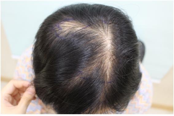 사진으로 잘 표현이 안 되었네요.. 실제 가까이서 보면, 혹은 사진을 확대하면더 확실하게 보이지는데요, 비었던 자리에서 아주 얇은 머리카락들이 자라나고 있어요. 여성의 탈모수술을 기피하는 이유가 워낙에 가늘어진 주변의 머리카락 때문에 빈자리는 없이 약해진 모낭 사이에 이식하려다가 자칫 훼손을 주면 이식한 머리카락과 염증이 생겨서 모두 다 빠져버리는 위험성이 높기 때문이랍니다..