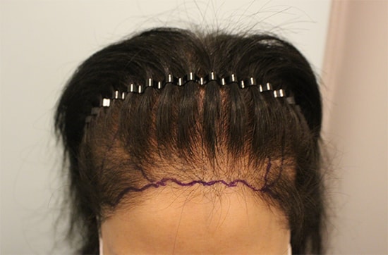 어쩔 수 없이 앞부터 정수리까지 전체적으로 심게 되었습니다..
