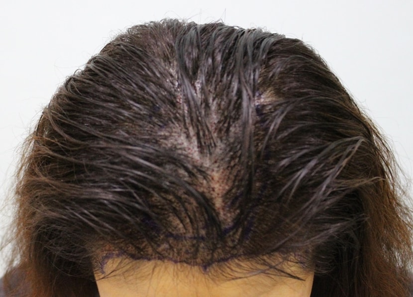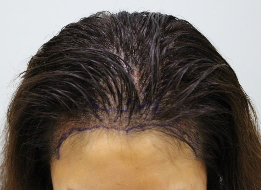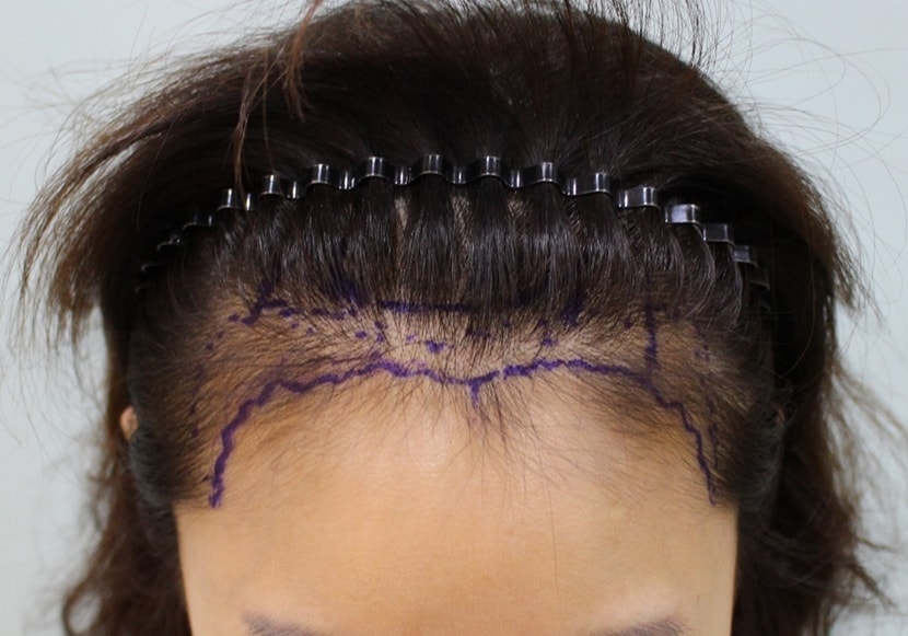 최종적으로는 라인에는 얇은 머리만 심고, 정수리엔 굵은 머리를 심기로 했습니다.