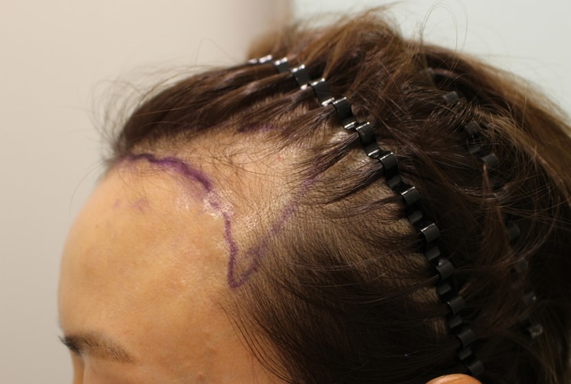 문제는 뒷머리에서 가져올 머리카락이 충분치 않았다는 점입니다. 3500모 이상이 필요한 면적이었지만 가지고 온 뒤 뒤가 비어보일수 있다는 진단이 있었습니다.