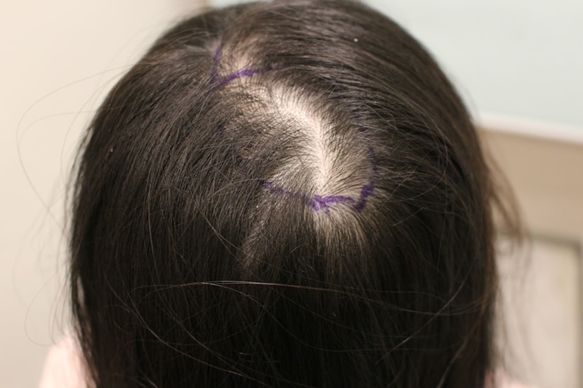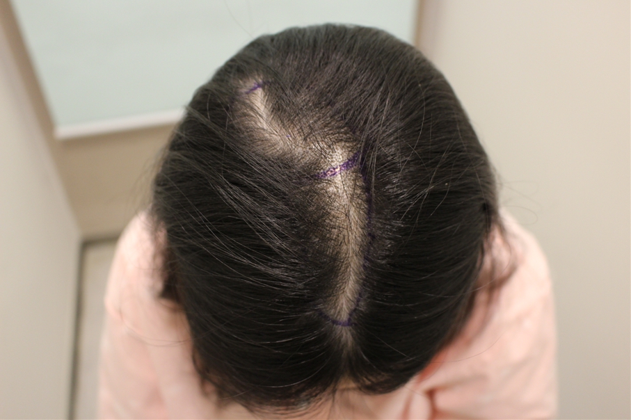 수술하기 전에, 정수리에 가르마가 넓어지고 머리카락도 빠지고 얇아져서 많이 안좋았어요.