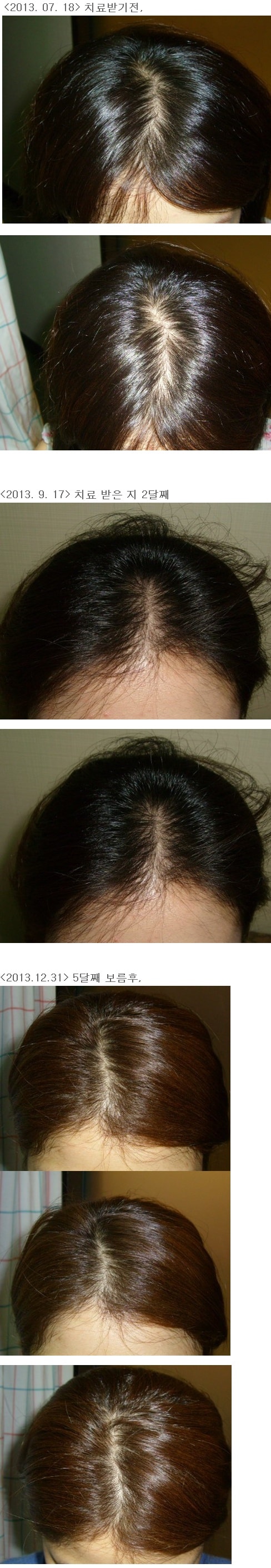 거리상 2시간정도 소요되는 거리라서 2주일에 한번씩 또는 시간 될때 가서 치료받고 저는 홈케어를 하루도 빠짐없이 원장선생님이 하라는 대로 열심히 바르고 뿌리고 약먹어서 효과가 나타났어요. 항상 보는 두피 항상 보는 머리카락이라서 엄청 좋아진 지 몰랐는데, 사진찍으신 것을 보고 오늘 한번 놀랬네요. 정말 많이 호전되었더군요.